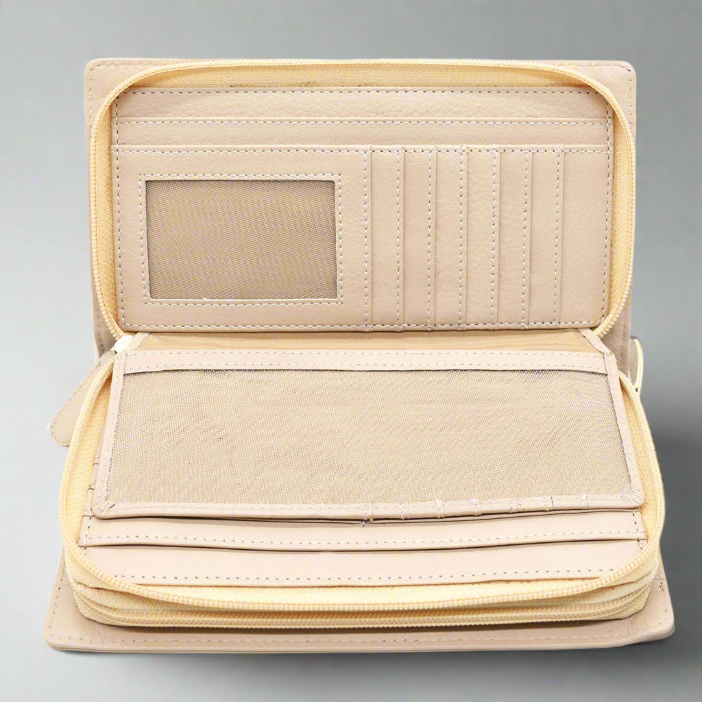 Refined luxury meets smart organization in the Gabriella Beige Wallet. Crafted from premium soft cow leather in a sophisticated beige hue, this wallet is designed for the modern woman who values both style and practicality.