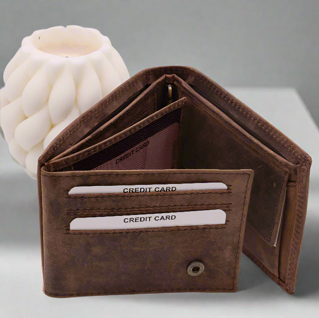 Experience the perfect balance of style and practicality with the Tucson Leather Men’s Wallet. Crafted from durable A Grade Cow Hunter Leather, this wallet is designed to withstand everyday use while maintaining an elegant look.