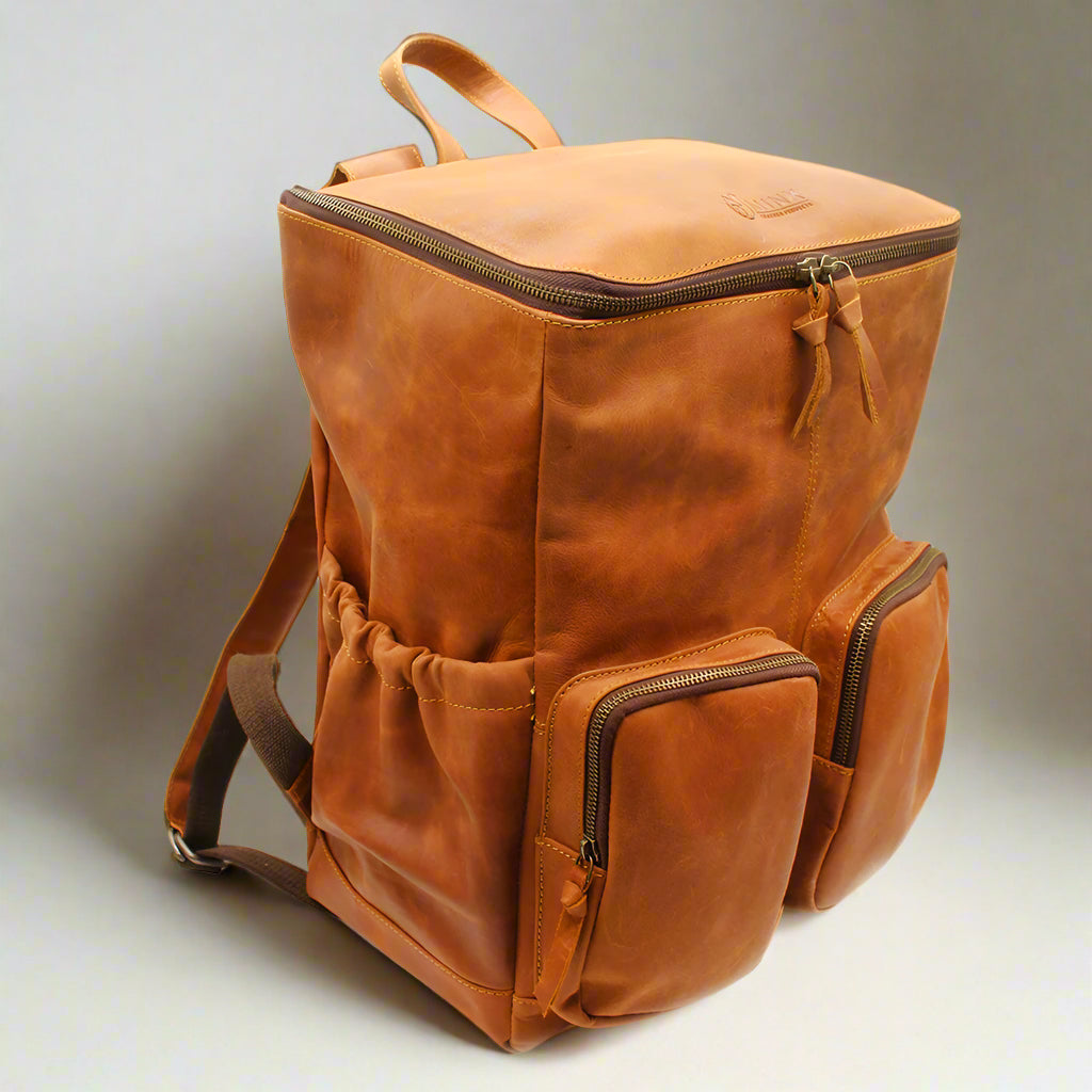 Crafted from luxurious buffalo leather, this stylish and practical backpack is designed for modern parents.