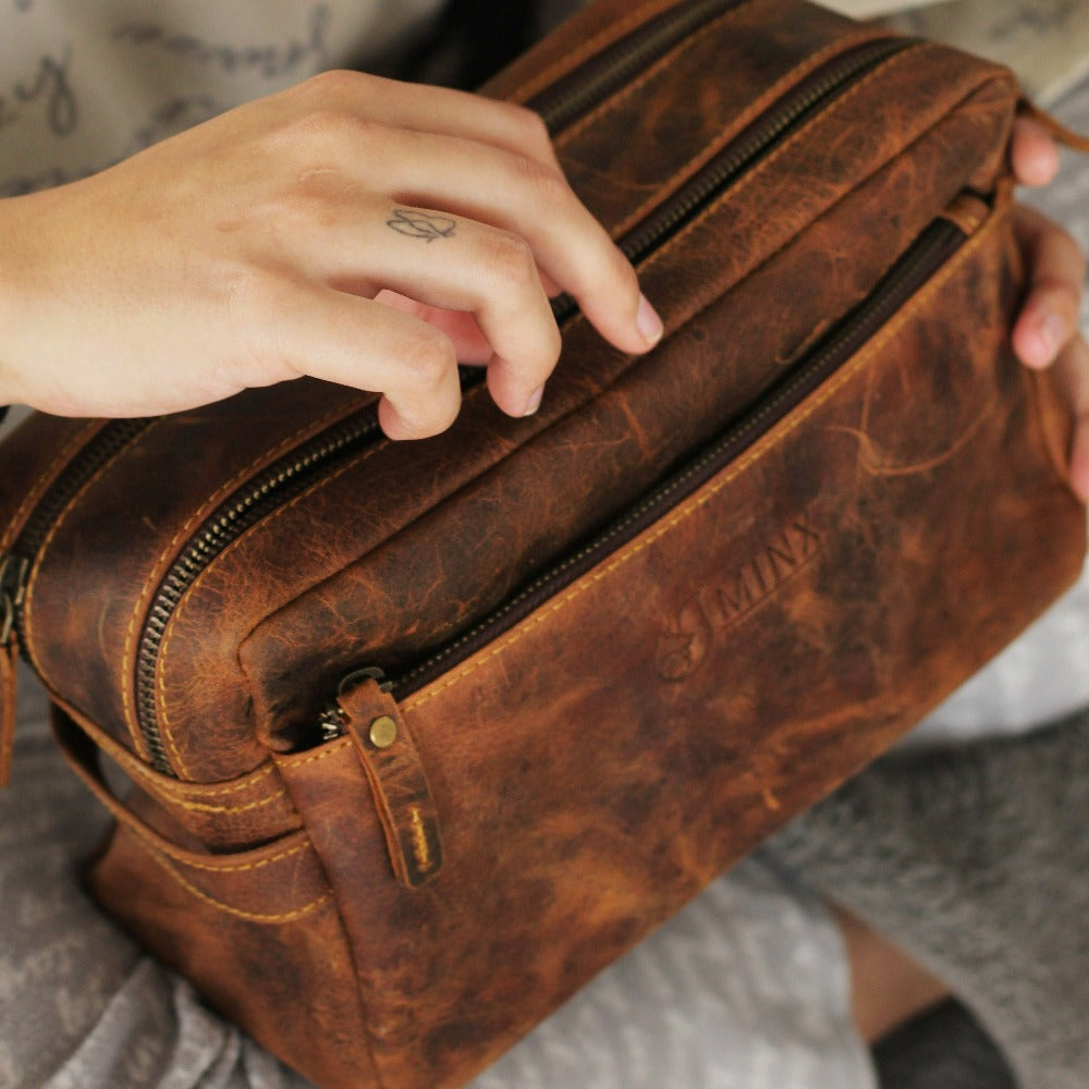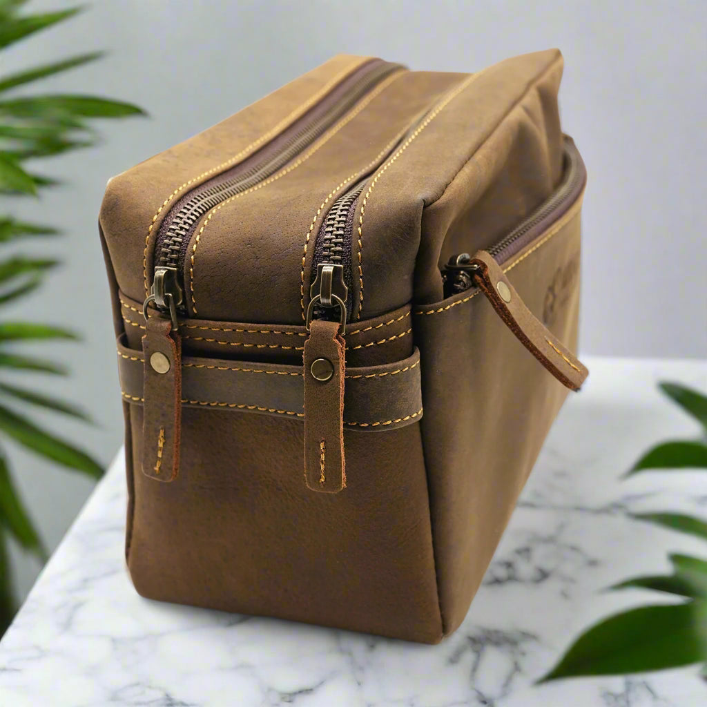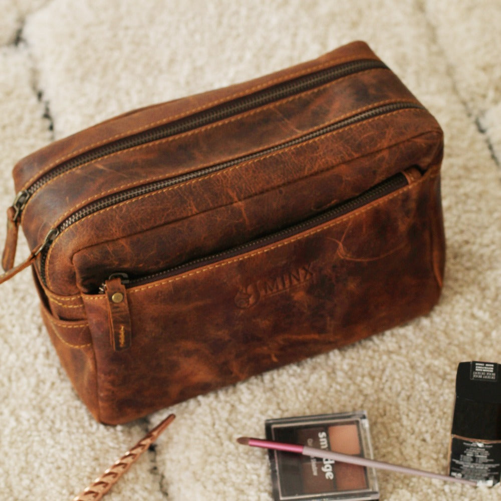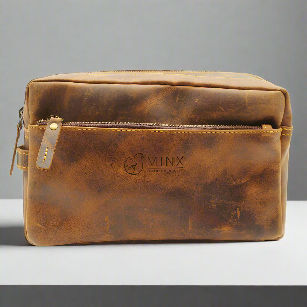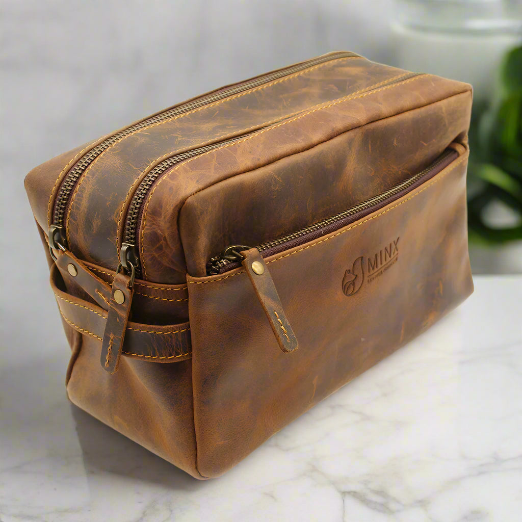 Elevate your travel essentials with this genuine leather toiletry bag, perfect for those who value both elegance and functionality.
