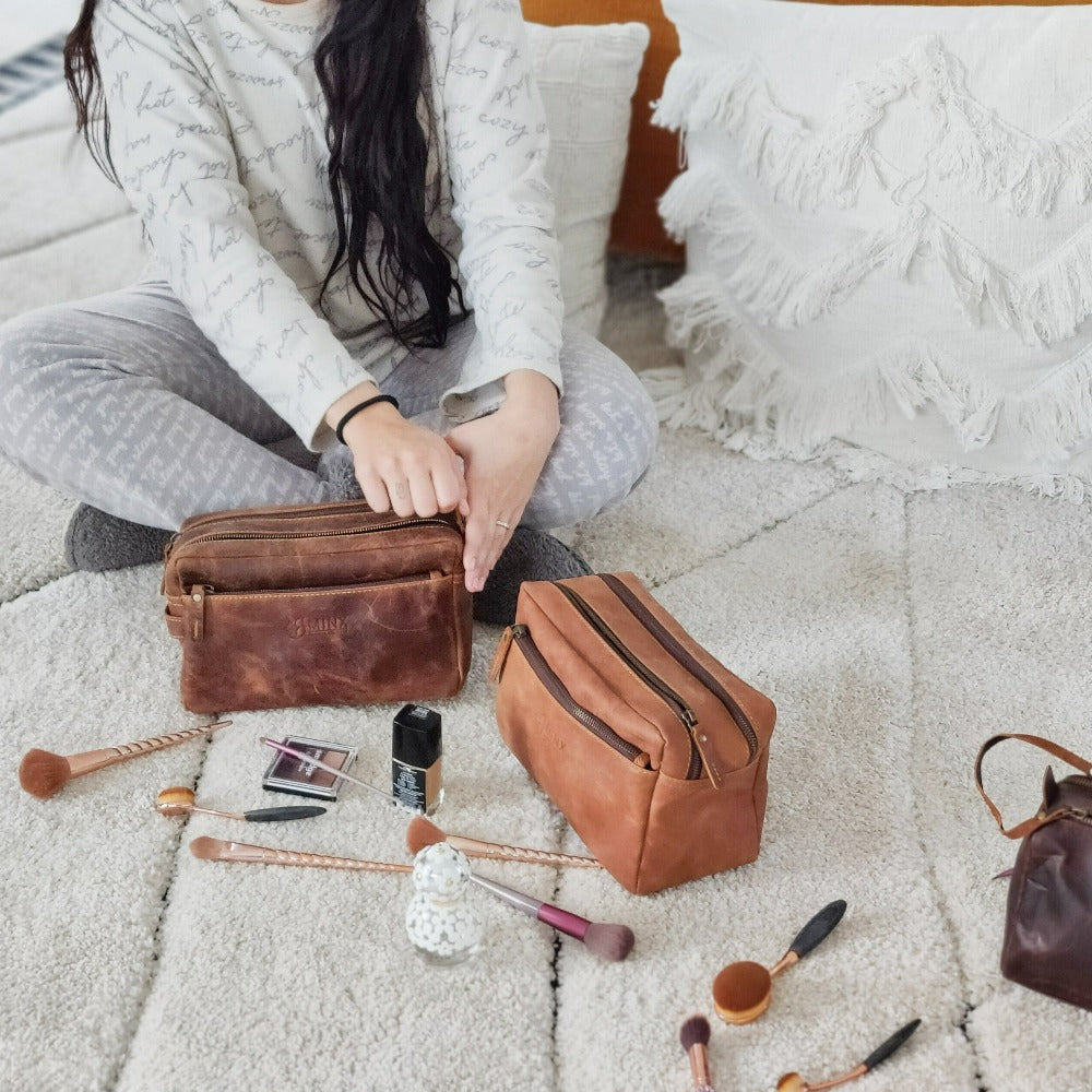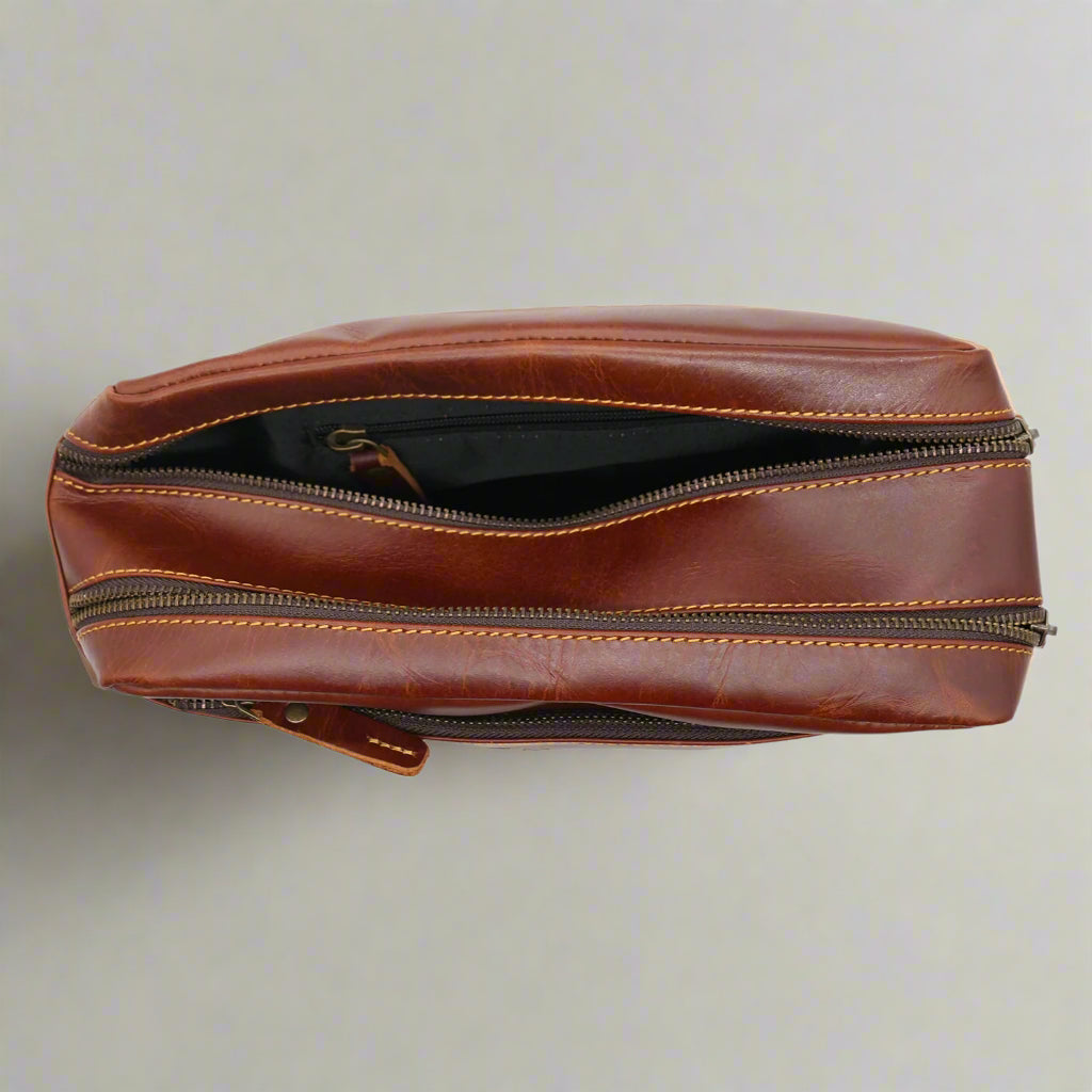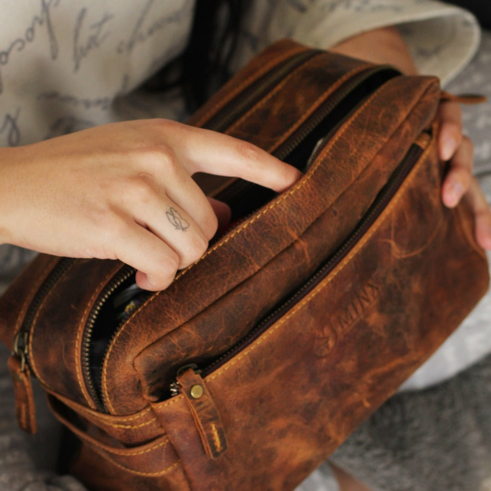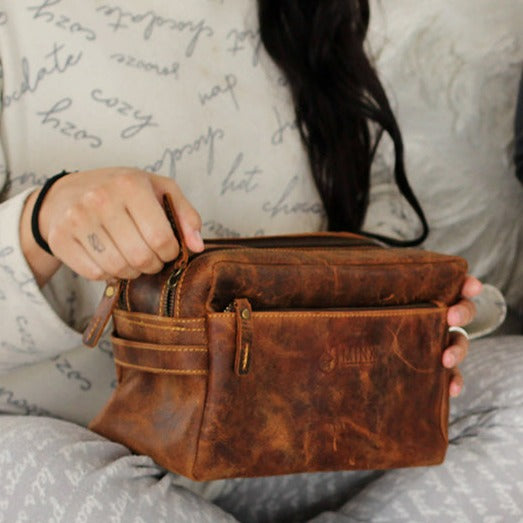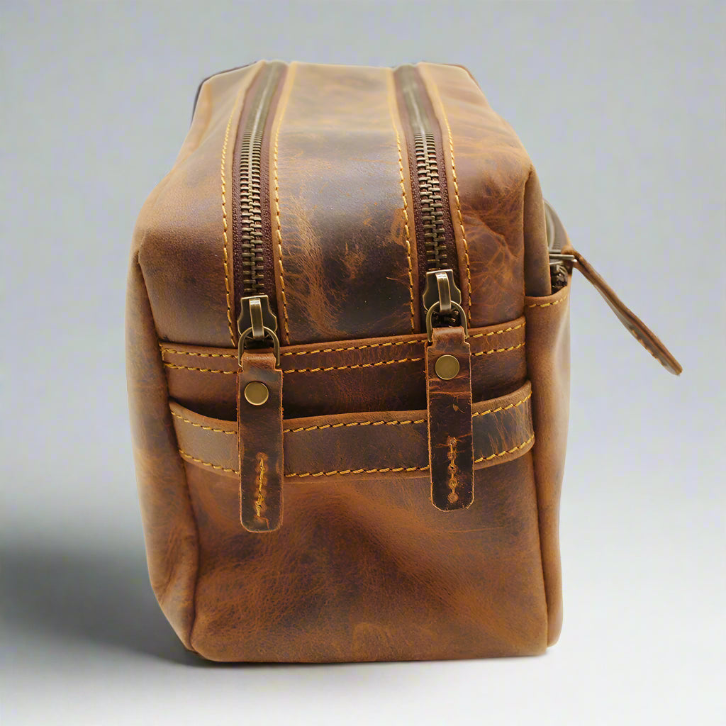 Elevate your travel essentials with this genuine leather toiletry bag, perfect for those who value both elegance and functionality.